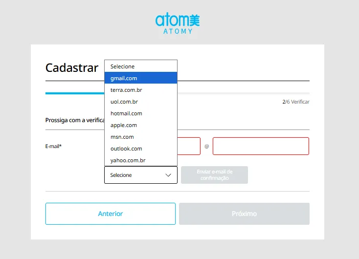 Tente fazer login no site oficial da Atomy!